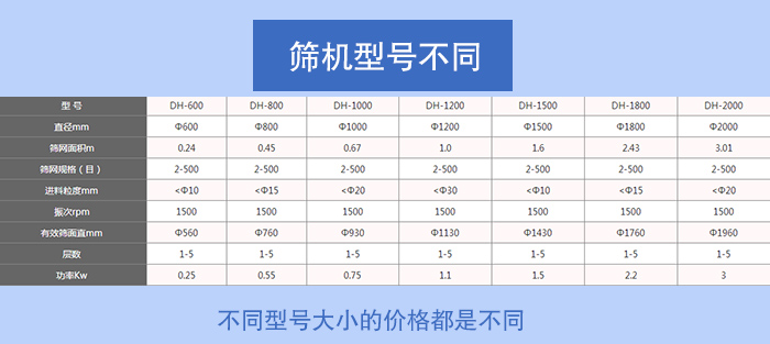 菜籽不銹鋼振動(dòng)篩不同型號大小的價(jià)格都是不同的,常用的型號有DH-400、DH-600、DH-800、DH-1000、DH-1200、DH-1500、DH-1800、DH-2000等八種標(biāo)準(zhǔn)型號。一般來說型號和振動(dòng)電機(jī)是相互關(guān)聯(lián)的,型號越大振動(dòng)電機(jī)的功率就越大,在一定時(shí)間內(nèi)能夠篩出的菜籽篩分產(chǎn)量就越多,相應(yīng)的價(jià)格就越貴。