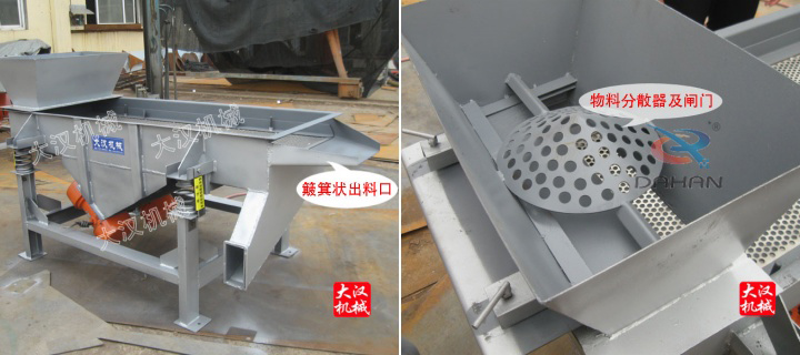大漢機(jī)械廠家根據(jù)客戶要求針對鋸末行業(yè)特殊設(shè)計了一款加裝傘形分料器的直線振動篩,解決篩網(wǎng)堵塞問題,鋸末和石頭完全從出料口中排出來,提高了篩分產(chǎn)量。