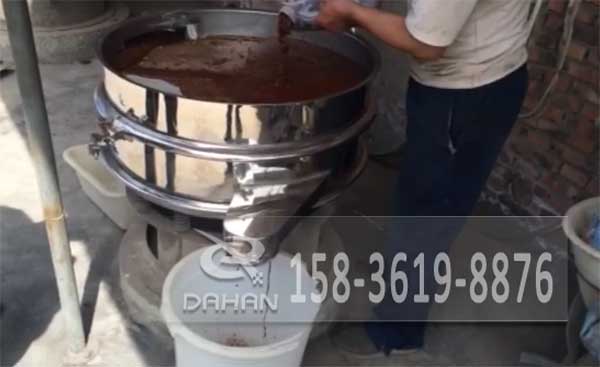 枸杞醬的篩分除雜使用枸杞醬振動篩,枸杞醬除雜振動篩效率高、設(shè)計(jì)精巧耐用,精類、粘液均可篩分;換網(wǎng)容易、操作簡單、清洗方便;雜質(zhì)粗料自動排出,可以連接作業(yè);獨(dú)特網(wǎng)架設(shè)計(jì),篩網(wǎng)使用時間長久,換網(wǎng)快,體積小,節(jié)省空間、移動方便。下面是河北客戶在大漢振動篩廠家篩分枸杞醬試機(jī)現(xiàn)場。