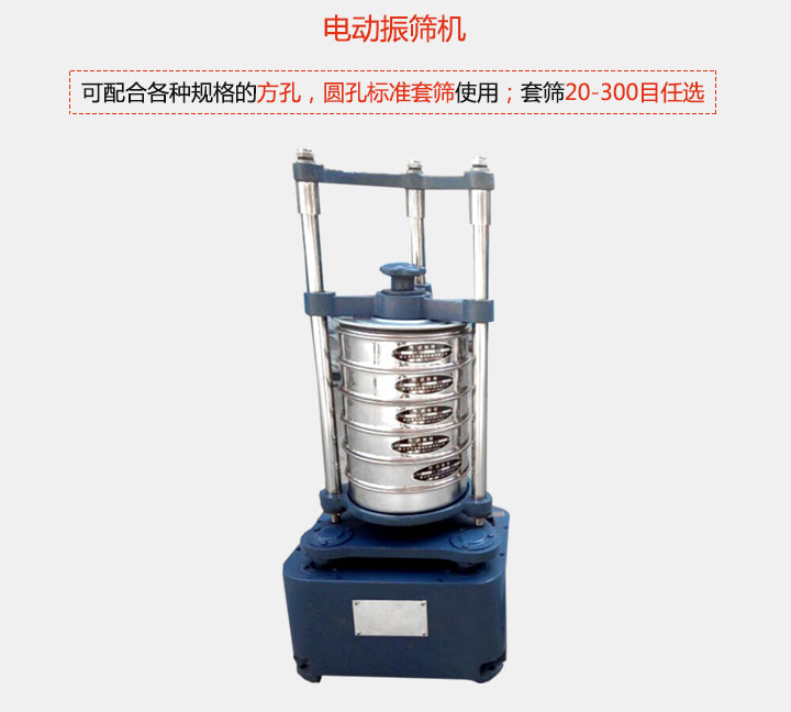 電動(dòng)振篩機(jī)適用于地質(zhì),冶金,化工煤炭,國(guó)防,科研,砂輪,水泥,建筑等部門(mén)的化驗(yàn)和試驗(yàn)室對(duì)物料進(jìn)行篩分分析。