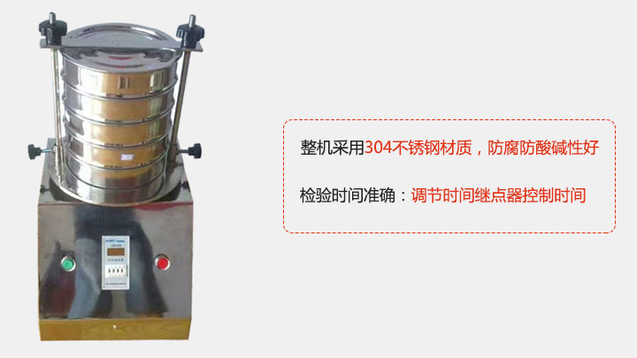 3,檢驗(yàn)篩整機(jī)采用304不銹鋼材料,該材質(zhì)針對(duì)于腐蝕酸堿物料的篩分并能保證其使用壽命。