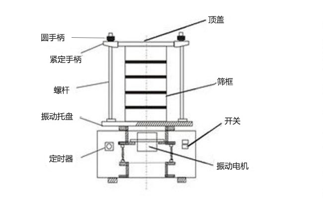 檢驗(yàn)篩主是以立式振動(dòng)電機(jī)作為整個(gè)電機(jī)的激振源,通過振動(dòng)電機(jī)帶動(dòng)上部振動(dòng)盤振動(dòng),再通過振動(dòng)盤傳導(dǎo)至安放在振動(dòng)盤上部的篩框上,然后由需要檢測目數(shù)的篩框把小于篩網(wǎng)口孔徑的物料顆粒篩分至下層篩框,如此層層篩選,使每一層檢驗(yàn)篩內(nèi)只留相同粒度的物料,達(dá)到不同粒度的分離并確定此物料的粒度組成,使篩框中的物料能夠達(dá)到非常有效的過濾,分級(jí),篩分的目的。