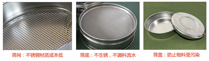 檢驗(yàn)篩是由篩網(wǎng)、篩框、篩蓋、篩底精制而成。